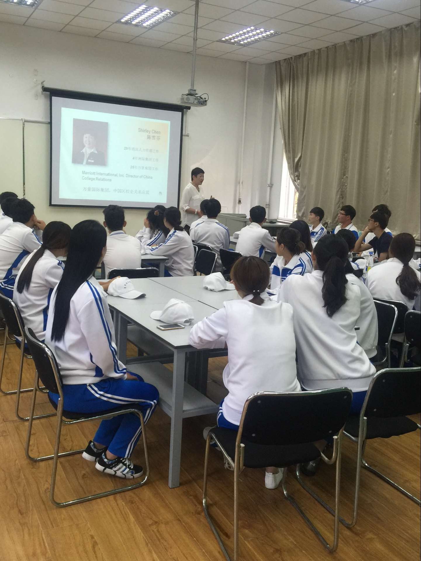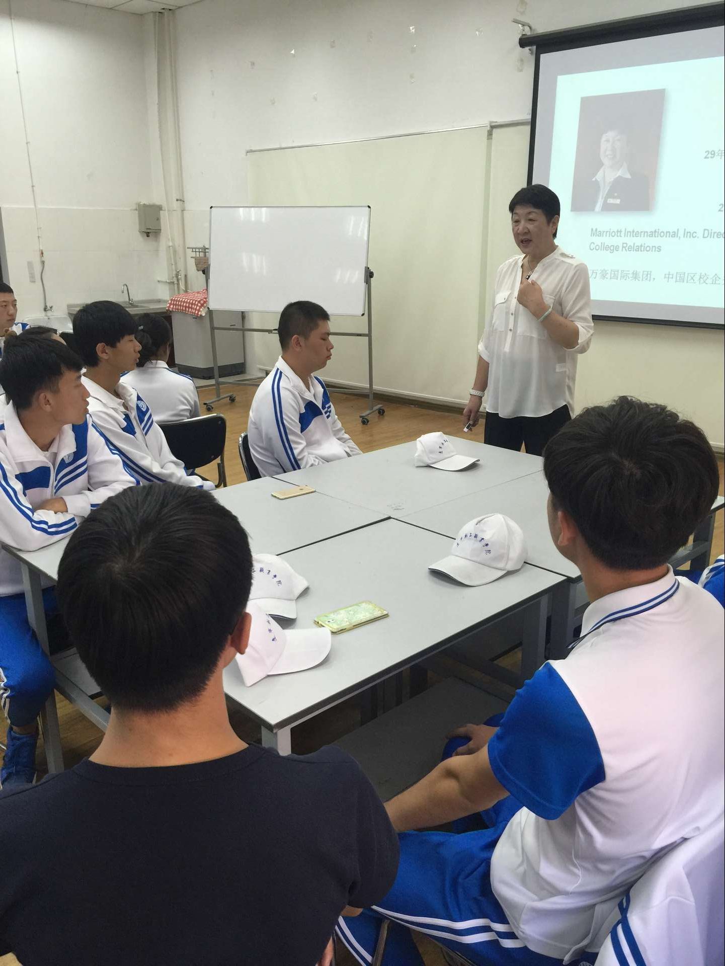 9月18日,万豪集团校企关系总监陈雪芬女士莅临公司,为“万豪订单班”作首次宣讲。 讲座过程中,同学积极参与,对于第一次接触万豪的他们,充满了好奇,对于自己的未来,又有很多疑问。陈老师对于同学们的疑问,一一作了解答,同时,分享了自己的很多故事。 万豪的企业文化是,以员工为本,首先只有员工忠于企业,那才能提供最好的服务,这一全新的理念,给同学们打开了新的思路。此次宣讲同学们收获颇丰。