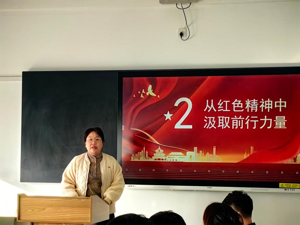 教育培训的第二篇章《从红色精神中汲取前行力量》,教师党支部书记赵美玲围绕中国共产党的成立、当今世界正经历百年未有之大变局和我国正处于实现中华民族伟大复兴的关键时期两个方面的英雄事迹展开讲述,教育党员教师们一定要高扬信仰这面永不褪色的旗帜,坚定理想信念、坚守初心使命的精神磨砺。每一次对革命英雄的缅怀,都是精神的洗礼;每一次对红色故事的回眸,都是信念的传承。