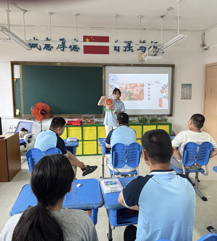 剪韵大师工作室负责人张晓奇老师围绕庄河剪纸这一非遗文化,深入讲解其历史渊源、艺术特色,同时结合文创产品开发,阐述传统剪纸艺术在现代设计中的创新应用。随后,工作室的同学们接过接力棒,以“七一” 主题为核心,分别展示传统剪纸纹样与创意剪纸作品的制作过程。从经典的党徽、红旗纹样,到融入现代审美的立体剪纸设计,同学们细致演示折纸、构图、运剪等步骤,耐心指导日新公司员工创作,让红色文化在指尖流转。