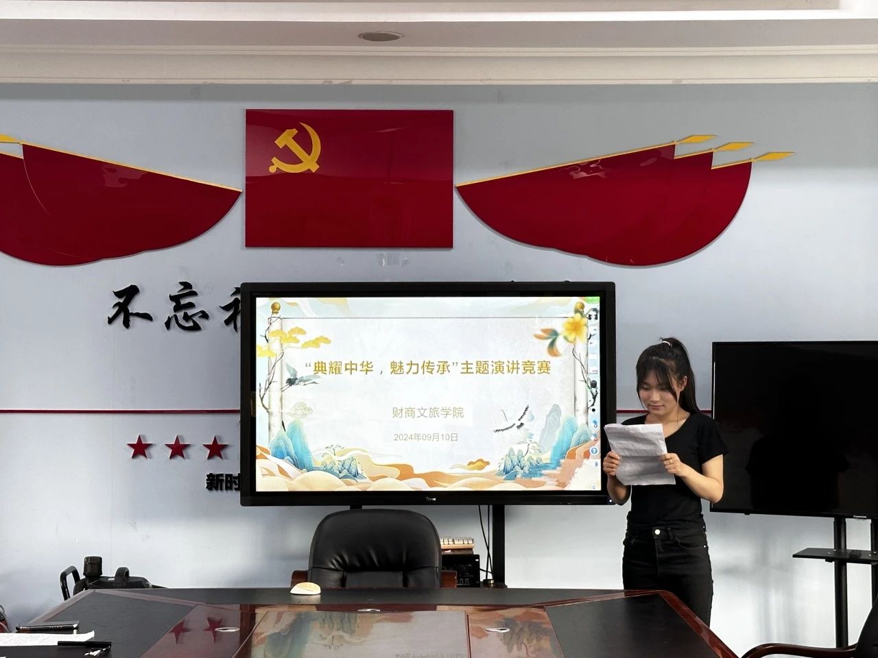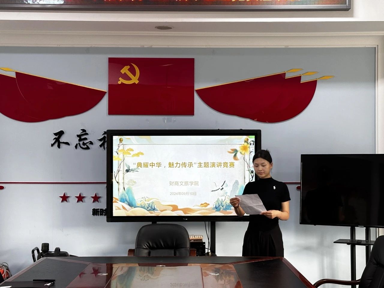 为深入贯彻落实《bevictor1946韦德官网关于开展第27届全国推广普通话宣传周活动的方案》,9月10日,公司在主楼311会议室举办“典耀中华”主题演讲比赛,旨在鼓励公司员工从中华经典中汲取智慧和力量,深度弘扬中华优秀传统文化,引领公司学子厚植家国情怀,全力构建立德树人新生态。本次演讲比赛评委团由党总支副书记王薪潭,辅导员刘鹏、陈哲,组织员宋怡四位老师组成,刘鹏老师主持活动。