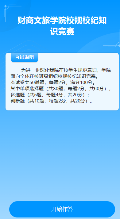 竞赛试题内容涵盖了公司的各项规章制度和员工管理手册两个方面,旨在全面考察员工对公司相关规定的了解和掌握情况。竞赛形式为线上考试,大一大二在校生参加竞赛。在考试过程中,员工们认真作答,展现出了良好的学习态度和熟知校规校纪的良好局面。
