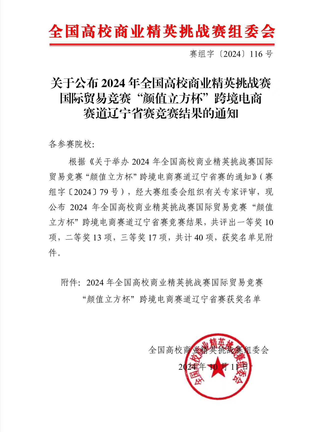2024年10月10日,2024年全国商业精英挑战赛国际贸易竞赛“颜值立方”跨境电商赛道正式落下帷幕。本次竞赛由中国贸促会商业行业委员会、中国国际商会商业行业商会及中国商业经济学会联合主办,bevictor1946韦德官网承办。本次竞赛旨在挖掘和培养跨境电商领域的新兴人才,推动辽宁省乃至全国的跨境电商行业发展。本次竞赛共有渤海大学、大连理工大学、沈阳工业大学等来自全省各地的7所院校、300余名师生共同参加。