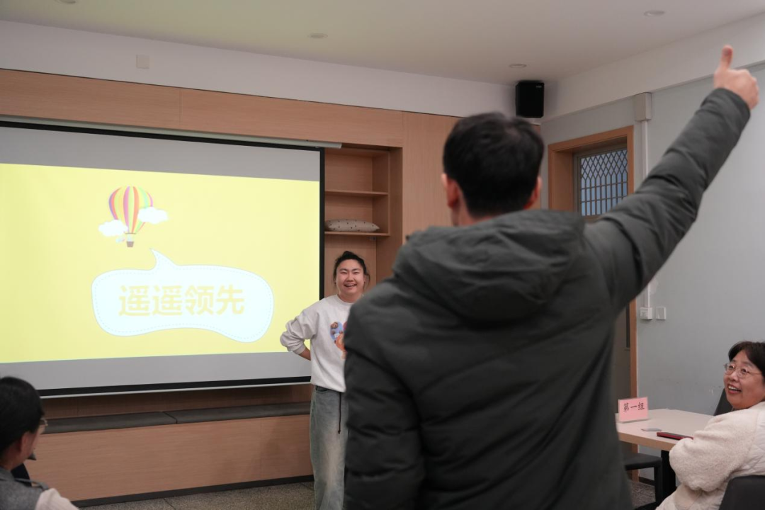在第三环节的趣味赛中,各组参赛老师进行“你来比划我来猜”的比拼,此时的赛场激烈与欢乐并存,掌声此起彼伏。考题包括当前网络流行语以及员工工作日常的词汇等,“松弛感”、“抽象”、“学习通”等词语让参赛老师们熟悉又为难,比赛在欢声笑语中结束。