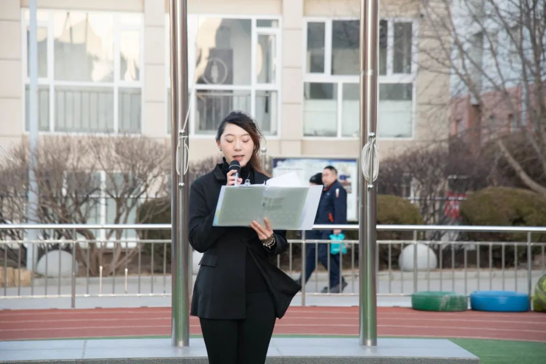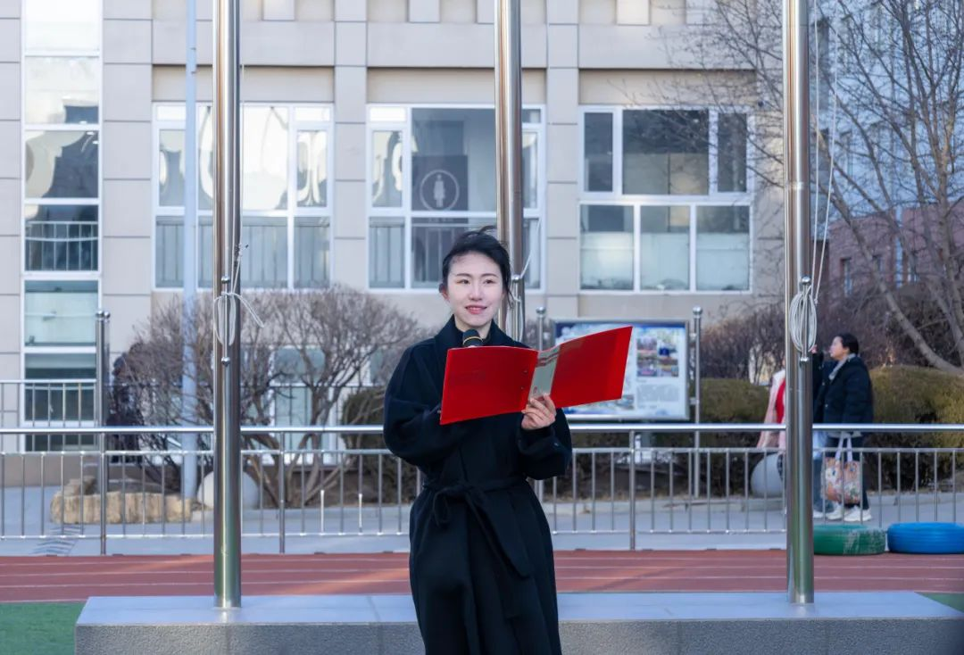 7时整,国旗班步伐铿锵、姿态昂扬,护送国旗缓缓入场。伴随着激昂雄壮的《义勇军进行曲》,五星红旗冉冉升起,在早春的晨风中猎猎招展,开启充满希望的新学期。开发区校区全体师生肃然而立,满怀深情向国旗行注目礼,表达对祖国的真挚祝福与热爱。
