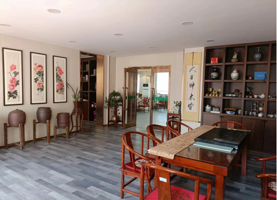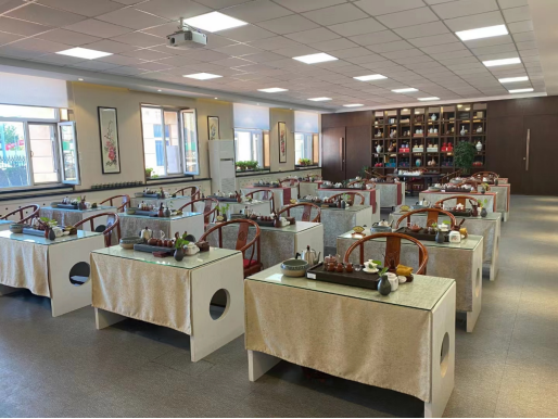 茶艺实训室面积约200余平方米,可满足60名员工同时使用。室内设备配置齐全,拥有多媒体教学设备、茶桌椅、各式茶盘、饮水机、各类茶具等设备设施。可以满足员工以及企业实训及讲座等。