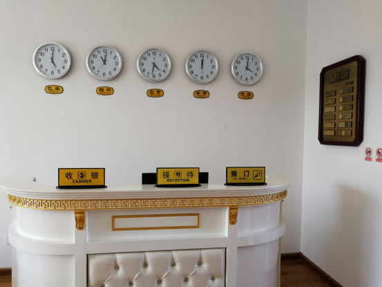 客房实训室面积约40平方米,可满足30名员工分组使用。实训设备包括:前台接待台、接待牌、大堂副理桌、沙发、电脑及酒店管理软件、行李车、价目表、不同时区钟表、打印机、点钞机、电话等。