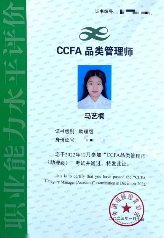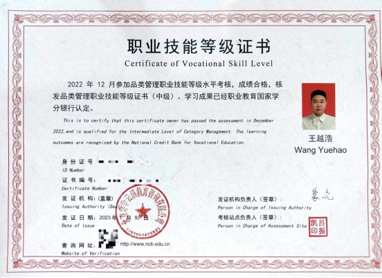 1+X品类管理职业技能等级证书(中级)、注册品类管理师(助理级)、助理店长等职业资格证书。